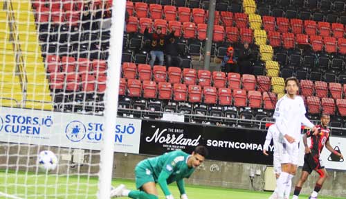 Slarv av ÖFK och Sise springer rätt fritt bakom Enemark och Suljic och kommer fri med Forsell och kan enkelt göra 1 – 0 till Utsikten. Misstänkt offside men domaren blåser för mål.