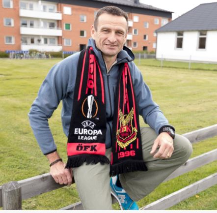 Till slu några ord om Ukraina och om ett lag som inte törs spela på sin hemmaplan. Det är många som lever under fruktansvärda betingelser i Ukraina genom dessa vansinnigheter som man kallar för krig, men som i själva verket är kallblodiga mord. Även fotbollen har det svårt. Vissa fotbollslag i Ukraina kan knappt fungera på grund av oroligheter i landet. Ett av dem är elitlaget Zorja Luhansk som ÖFK mötte i i Europa League. De vågar inte spela på sin hemmaplan i Luhansk, som nu är en krigszon. De spelade sina hemmamatcher ett hundratal mil därifrån där det antagligen är betydligt lugnare. Det var där ÖFK mötte dem. ÖFK vann båda matcherna med 2-0. Målskyttar på bortaplan var Saman Ghoddos och så var det ett självmål. Borta var det Saman Ghoddos och Alhaji Gero som var målskyttar. Gero avlossade en stenhård kanon i nättaket när det återstod någon minut av matchen. Spelare från Ukraina i ÖFK Under åren har det varit två ukrainska spelare i ÖFK. När ÖFK spelade i div 1 norra 2007 var Oleksandr Matyyuk hårdför back. Han blev sedan vid ÖFK:s matcher österut något av en ambassadör för ÖFK. Matyyuk kunde språket och han visste det mesta om landet. Han visade vägen för ÖFK. Oleksandr Matyyuk. Foto Haldo Jonsson