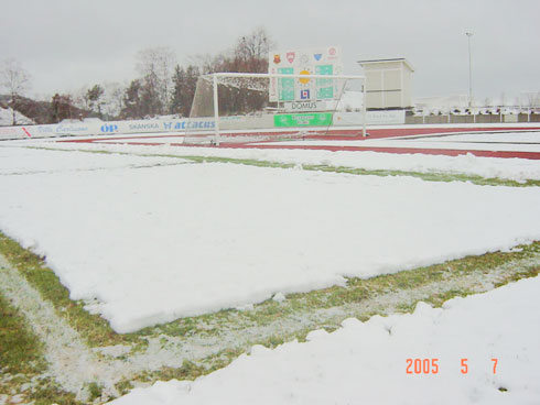 Matchen som snöade in. Den inträffade i div 2 när ÖFK skulle möta IFK Luleå på Hofvallen. Allt gick enligt planerna, men man hade inte räknat med att det skulle snöa två decimeter under natten. Luleå anlände till Östersund. Det var då problemen och ovänskapen började. Hofvallen. som har gräs som underlag. gick inte att spela på. Något planalternativ fanns inte. De konstgräsplaner som fanns på den tiden var inte uppvärmda. Matchen blev framflyttade och Luleå fick åka hem med oförrättat ärende. Det uppstod stor osämja. Vissa ledare i Luleå var ursinniga och smockan hängde i luften. Ja, faktiskt var det så. Till saken här att Luleå inte fick ersättning av förbundet för den onödiga resan. Hofvallen i vit skrud. Foto Haldo Jonssn