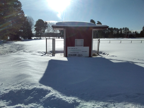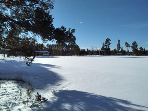 Jag tog en sväng förbi Älvros Socken&Fannhus&Zakrivallen (Zakri) idag, "Infart Härjedalen" ni vet, ty jag måste ju kolla opp om Älvros IK är laddad inför seriespelet i sommar, det är ju 21 år sedan denna klassiska Härjedals-klubb hade ett lag i egen regi (2002), man hade också ett lag 2011, men då som "farrnarklubb".   Än är det då mycket lugnt på denna idylliska fotbollsarena, beläget vid Ljusne Älven, i det Syd-Östligaste hörnet av Härjedalen. Kuriosa:2001 hade min stora Fotbollsidol hemifrån Nårsia&Hede Bengt-Arne Nordström sin sista stora show här på Zakrivallen, när moderklubben Hede IK (1933) vann Härjedals-mästerskapet för veteraner, och "Benke/Bass'n/Basill'n" var turneringens lirare nummer 1 (som vanligt). Tragiskt nog så var han borta några veckor senare. Det blir inte bättre än så här för denna gång, men det blir nog ett riktigt stort "reportage" längre fram i vår=Citat från Legenden Olle Lööv när det begav sig, "Fotbollen måste leva vidare, dundrar OL, och lutar sig emot en grov björk på Zakrivallen i mitten utav 1970-talet, men OL var mycket grövre än den grova björken...Häpp"!