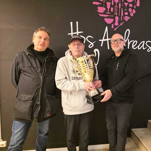 Trots att det var eftermiddag och restaurangen Hos Andreas på Kyrkgatan var stängd, så uppstod ändå lite feststämning när restaurangens ägare Andreas Eriksson infann sig för att dela ut priset till årets vinnare av Hos Andreas tipset, nämligen till Classe Olofsson.