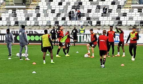 Bild från uppvärmningen före matchen mot Oddevold. Foto Barbro Fundin Hedlund