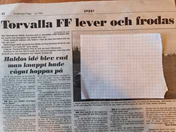 Torvalla FF samarbetade i en säsong med Videogott BK. Efter att Videogott/Torvalla FF hade vunnit div 5 återgick föreningsnamnet till Torvalla FF. Videogott BK upphörde då som förening, och Torvalla FF gick vidare till div 4, men inte ensamma. En ny förening bildades. De skriver jag om i nästa avsnitt. |