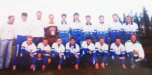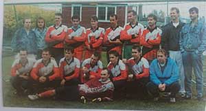 Kvalmatch mot Hede 1988-99. Ägaren av Videgott Kjell- Åke Nlsson längst till vänster. Tränaren Hans Furborg längst ner till höger.
