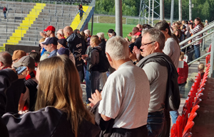 Bildtext: Många ur publiken stannade kvar efter matchen och hyllade spelarna en lång period med stående applåder. Det var det värda efter att ha bjudit oss på seger och stor fotbollsunderhållning.