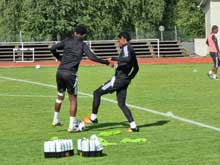 Jag kanske var en aning sen, och så slutade träningen något tidigare än beräknat, så jag får som vanligt förlita mig våra duktiga medarbetare på fotbollz.se som alltid är på träningarna och iakttar.