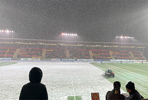 Matchen som snöade in. Den inträffade i div 2 när ÖFK skulle möta IFK Luleå på Hofvallen. Allt gick enligt planerna, men man hade inte räknat med att det skulle snöa två decimeter under natten. Luleå anlände till Östersund. Det var då problemen och ovänskapen började. Hofvallen. som har gräs som underlag. gick inte att spela på. Något planalternativ fanns inte. De konstgräsplaner som fanns på den tiden var inte uppvärmda. Matchen blev framflyttade och Luleå fick åka hem med oförrättat ärende. Det uppstod stor osämja. Vissa ledare i Luleå var ursinniga och smockan hängde i luften. Ja, faktiskt var det så. Till saken här att Luleå inte fick ersättning av förbundet för den onödiga resan. Hofvallen i vit skrud. Foto Haldo Jonssn